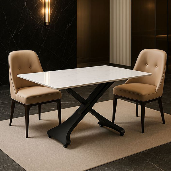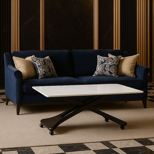 ALONSO τραπεζάκι με μηχανισμό για μετατροπή σε τραπέζι σε άσπρο gloss κεραμικό και μαύρη βάση