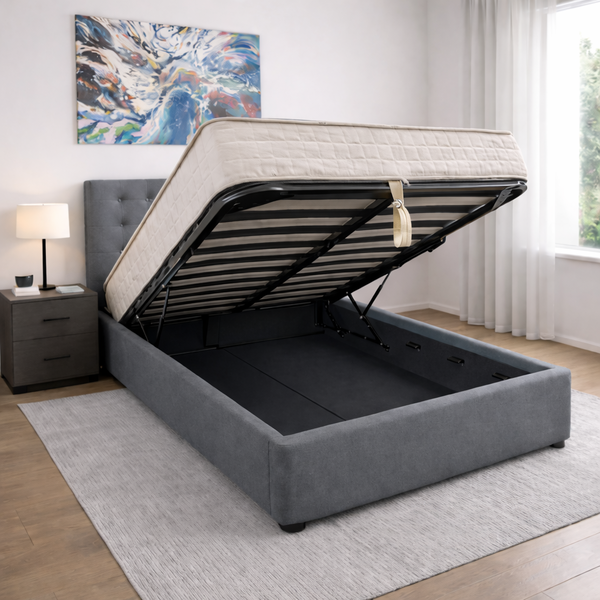 ANNA SOPHIA κρεβάτι 107x192εκ με αποθηκευτικό χώρο σε γκρίζο ύφασμα