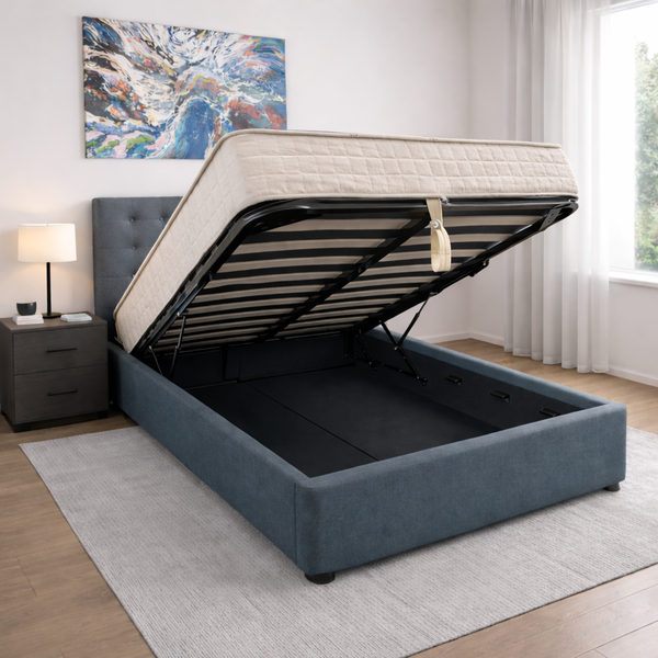 ANNA SOPHIA κρεβάτι 107x192cm με αποθηκευτικό χώρο σε μπλε ύφασμα