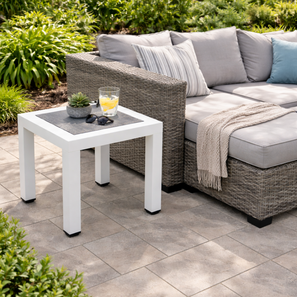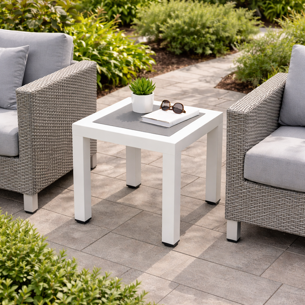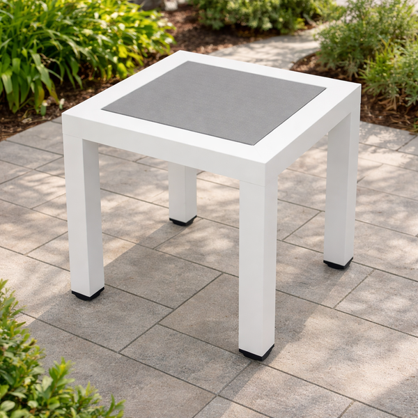 ARES (YQ-088-ST) τραπεζάκι κήπου σε ασημί αλουμίνιο και beige ύφασμα