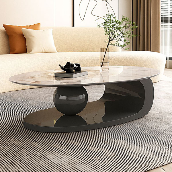 AURORA τραπεζάκι σε άσπρο-καφέ gloss κεραμικό και γκρίζα βάση