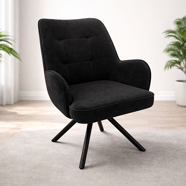 BELLA καρέκλα σε μαύρο αδιάβροχο ύφασμα και μαύρη ματ βάση