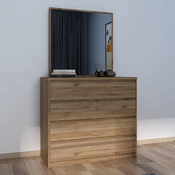 MAYIA σιφονιέρα και καθρέπτης σε μελαμίνη καρυδιάς