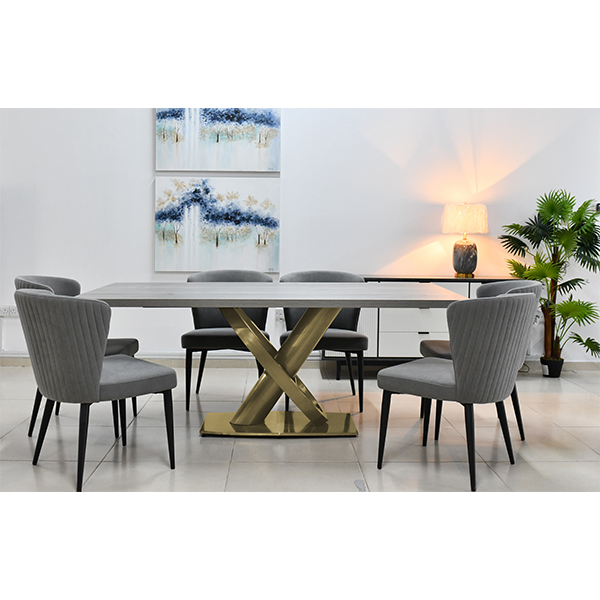 CLAIRE τραπεζαρία σε γκρίζα μελαμίνη και χρυσή ανοξείδωτη βάση