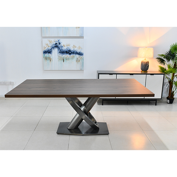 CLAIRE τραπεζαρία σε μελαμίνη καρυδιάς και γκρίζα ανοξείδωτη βάση