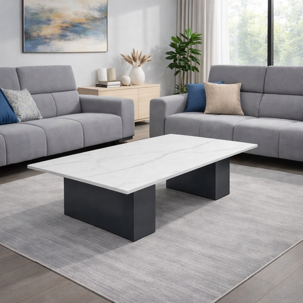 COLON τραπεζάκι σαλονιού σε άσπρο ματ κεραμικό και γκρίζα ανοξείδωτη βάση