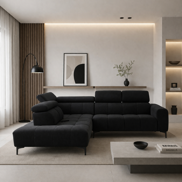 DALIA αριστερός γωνιακός καναπές σε μαύρο αδιάβροχο ύφασμα