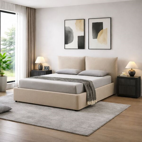 EMILY κρεβάτι 160x200cm με αποθηκευτικό χώρο σε beige ύφασμα