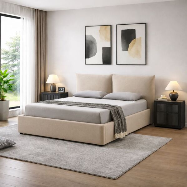 EMILY κρεβάτι με αποθηκευτικό χώρο σε beige ύφασμα