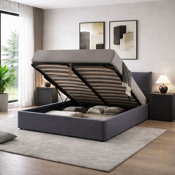 EMILY κρεβάτι 107x192cm με αποθηκευτικό χώρο σε γκρίζο ύφασμα