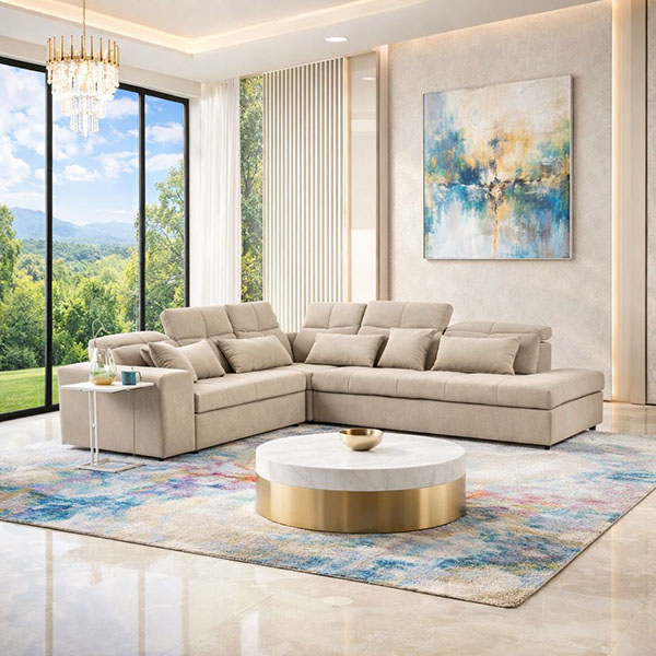 EMMA δεξιός γωνιακός καναπές σε μπεζ αδιάβροχο ύφασμα