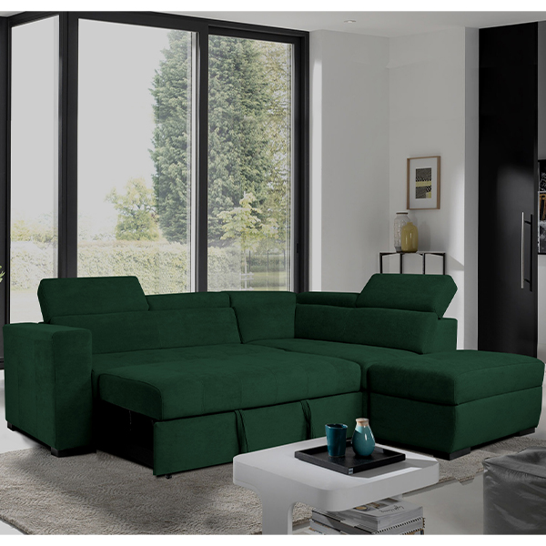 FIONA καναπές κρεβάτι (δεξιά γωνία) σε πράσινο αδιάβροχο ύφασμα