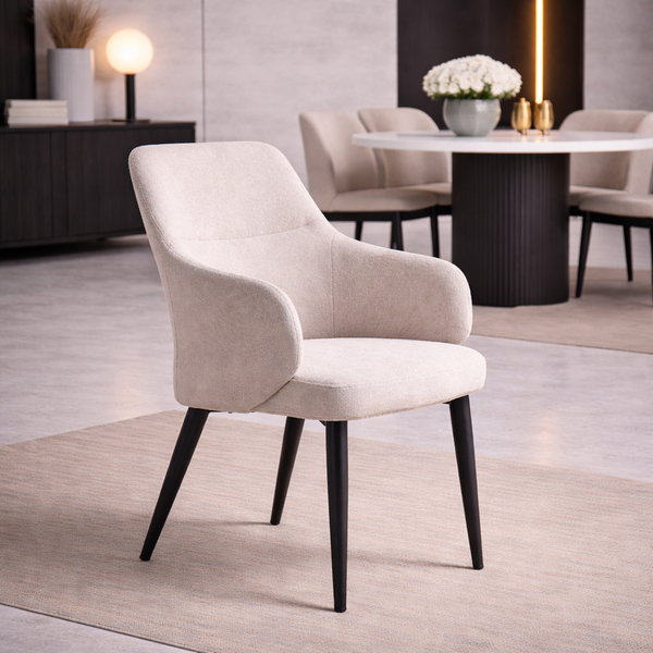 FLORIA καρέκλα σε beige αδιάβροχο ύφασμα και μαύρη ματ βάση