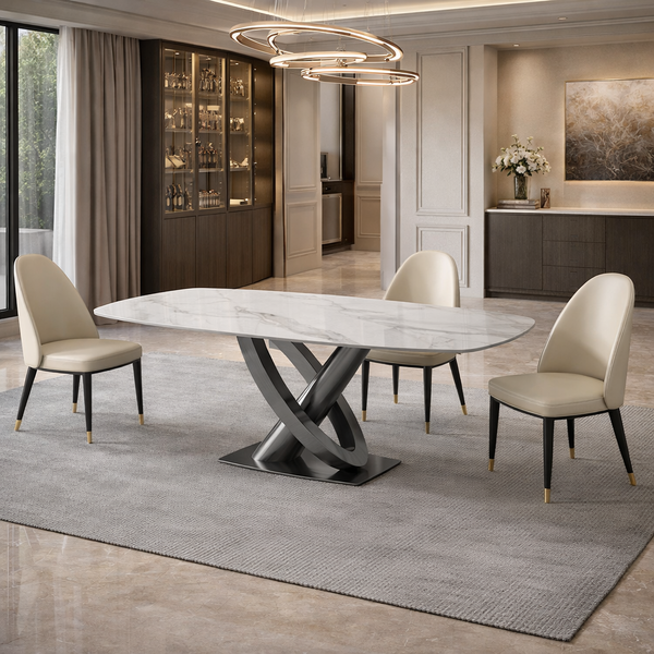 FORMOZIA τραπέζι 180x90εκ σε άσπρη γυαλιστερή κεραμική επιφάνεια και γκρίζα βάση από ανοιξείδωτο ατσάλι