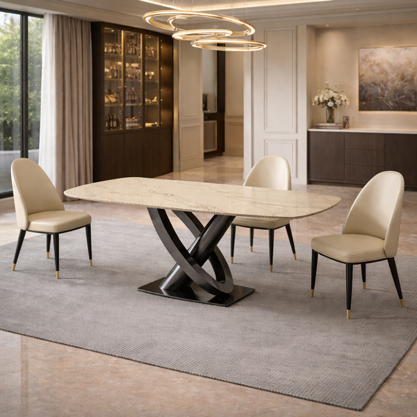 FORMOZIA τραπέζι σε άσπρο δρυς ματ κεραμική επιφάνεια και γκρίζα βάση από ανοξείδωτο ατσάλι
