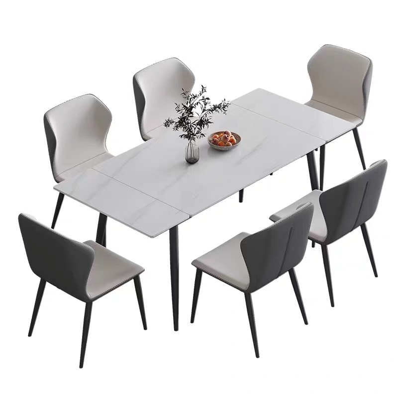 JAMES ανοιγόμενο τραπέζι σε γκρίζο γυαλιστερό κεραμικό και μαύρη ματ βάση