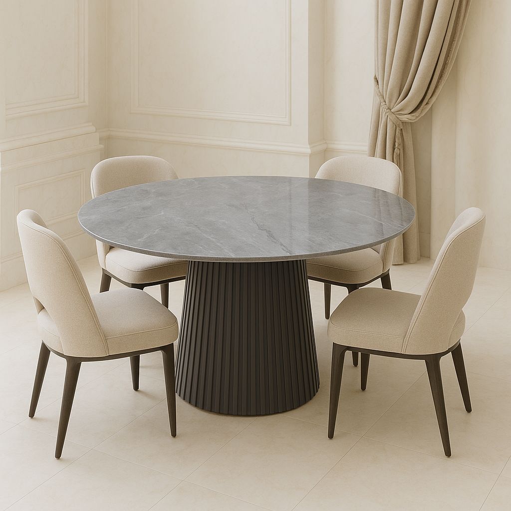 KEVIN τραπέζι 120cm σε γκρίζο γυαλιστερό κεραμικο και γκρι χρώμα ξύλου βάση