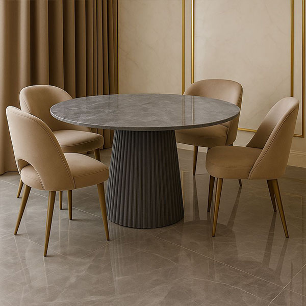 KEVIN τραπέζι 130cm σε γκρίζο γυαλιστερό κεραμικο και γκρι χρώμα ξύλου βάση