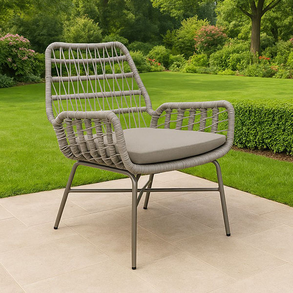 KYRA πολυθρόνα σε beige σχοινί, beige μαξιλάρια και champagne αλουμίνιο