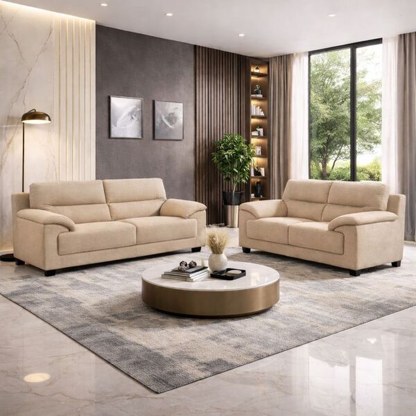 LARISSA 3θέσιος & 2θέσιος καναπές με pocket springs σε beige αδιάβροχο ύφασμα