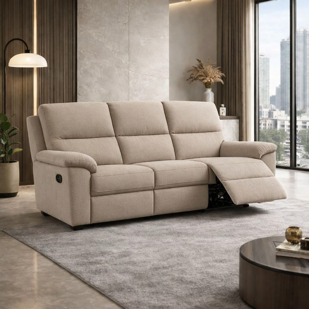 MARGARET 3θέσιος καναπές με μηχανισμούς recliners σε beige αδιάβροχο ύφασμα