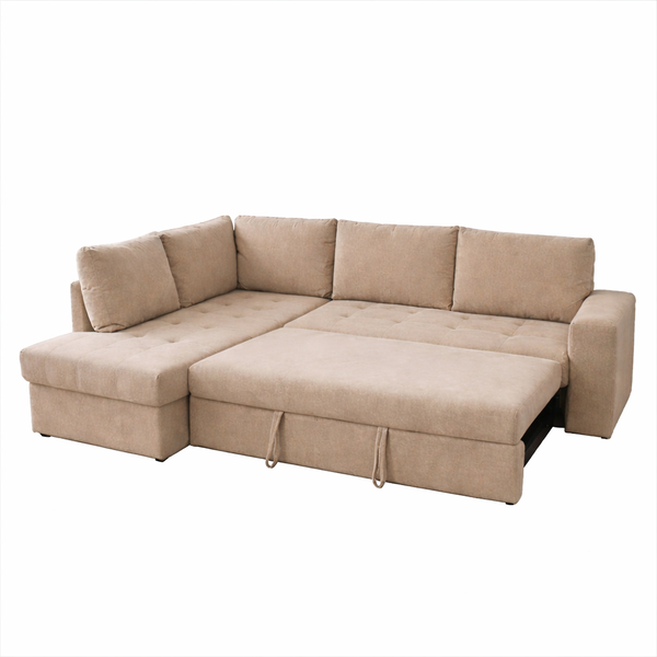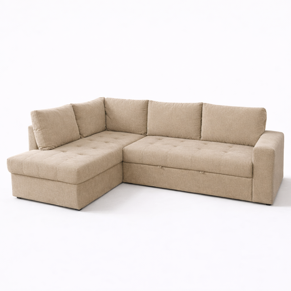 MARKELLA αριστερός γωνιακός καναπές-κρεβάτι σε μπεζ αδιάβροχο ύφασμα