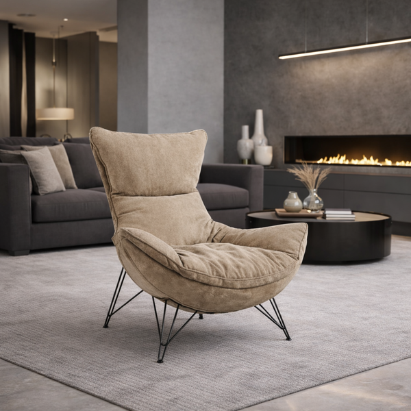MERCURY πολυθρόνα σε μπεζ αδιάβροχο ύφασμα και μαύρα πόδια