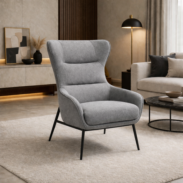 PATRICIA πολυθρόνα σε γκρίζο αδιάβροχο ύφασμα και μαύρα πόδια