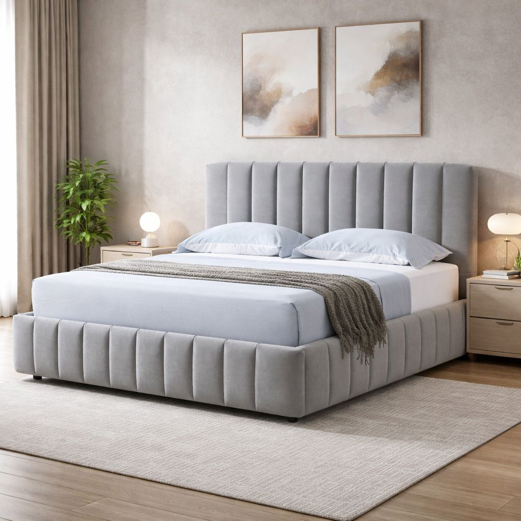 SANA κρεβάτι 180x200cm σε γκρίζο ύφασμα
