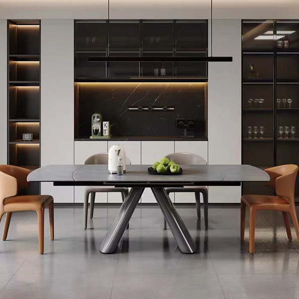 SANDRA ανοιγόμενο τραπέζι σε άσπρο ματ κεραμικό και μαύρη ματ βάση
