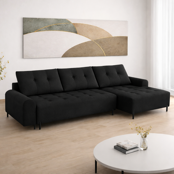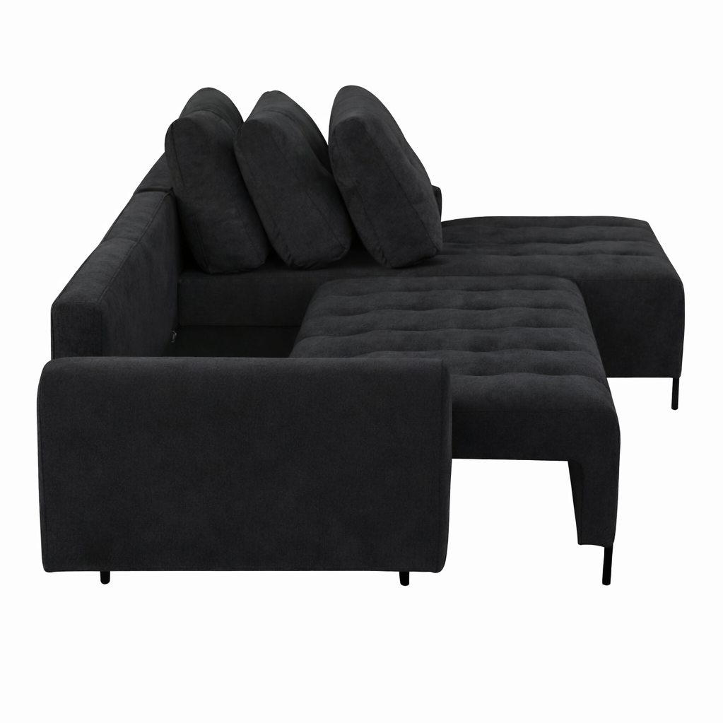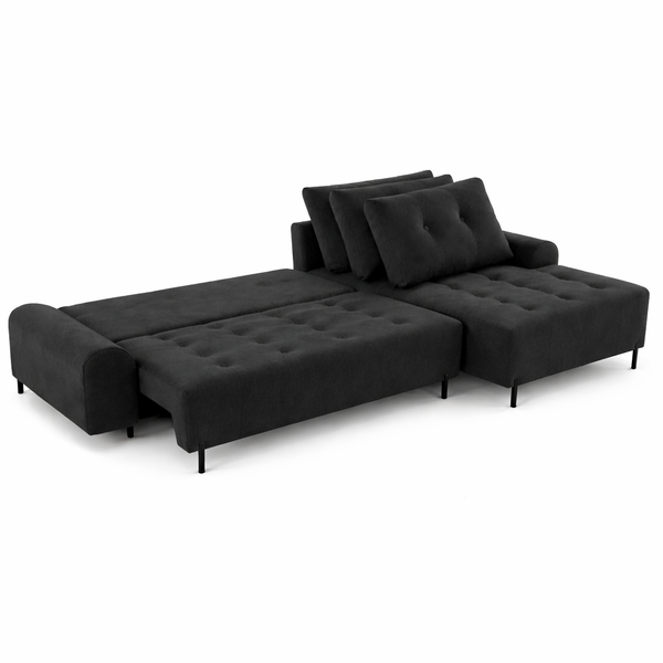 SHANNA δεξιός γωνιακός καναπές-κρεβάτι με αποθηκευτικό χώρο σε μαύρο αδιάβροχο ύφασμα