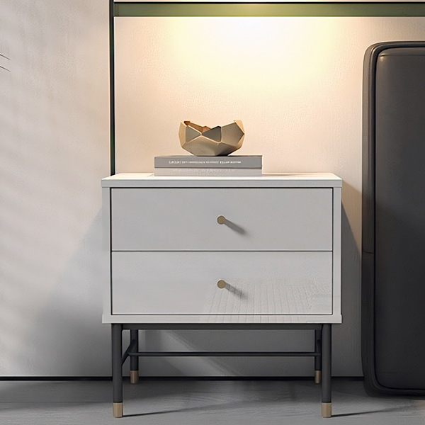 SHARON κομοδίνο σε άσπρη γυαλιστερή μελαμίνη, μαύρα πόδια και χρυσές λεπτομέρειες