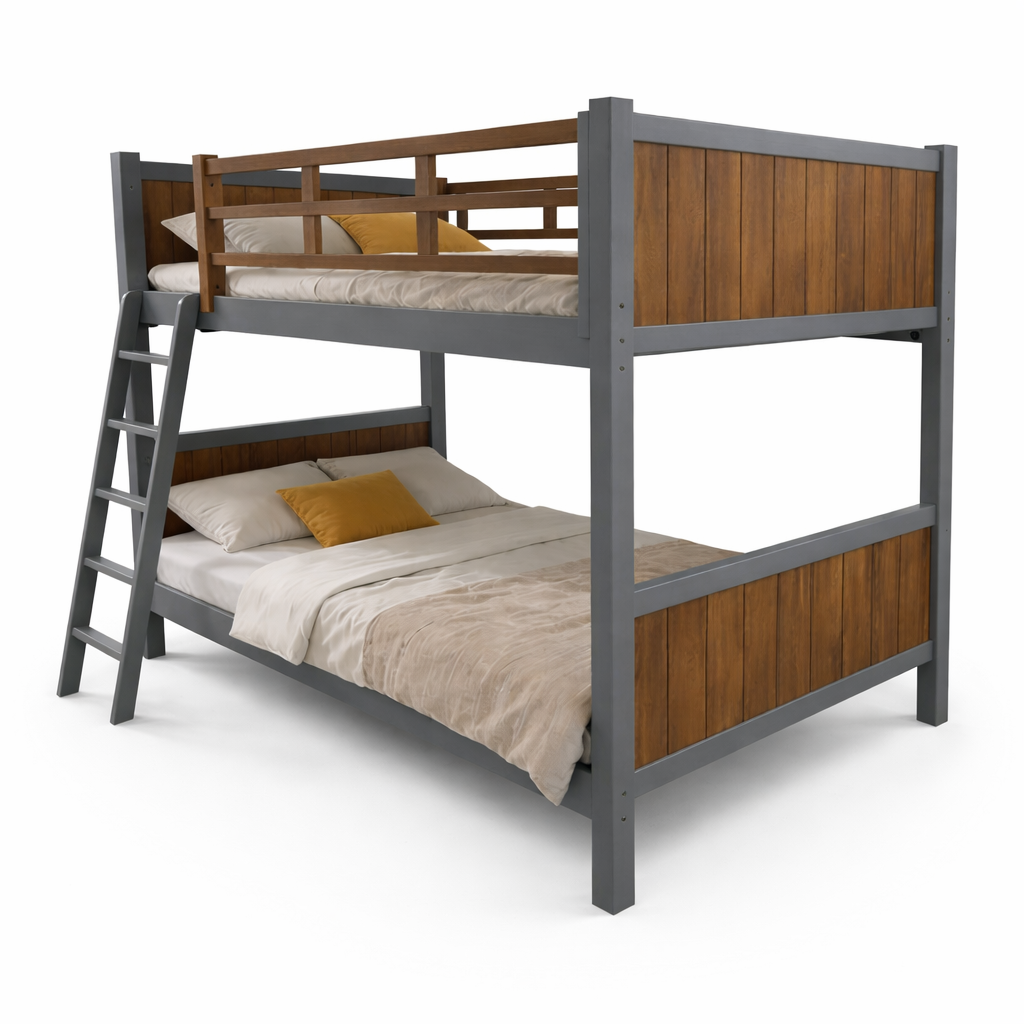 SISY κουκέτα 107cm σε καρυδί και γκρίζο μασίφ ξύλο