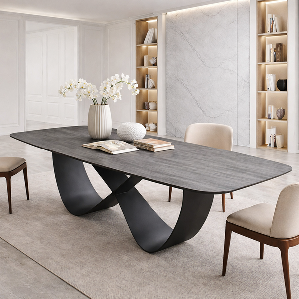 TERESA τραπέζι 180x90εκ σε γκρίζα μελαμίνη και μαύρη ματ βάση