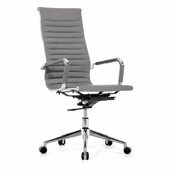 THOMAS καρέκλα γραφείου σε γκρίζα δερματίνη και αλουμίνια βάση