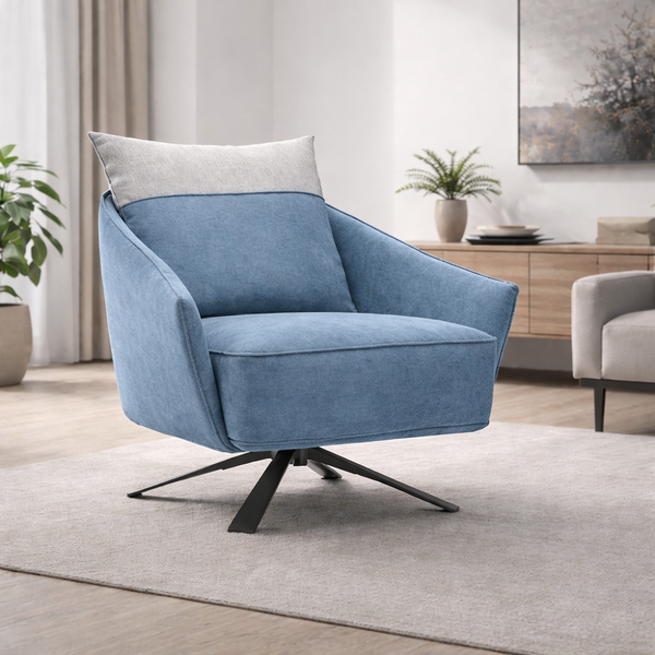 AGNES ARMCHAIR IN BLUE TEFLON FABRIC AND BLACK LEGS