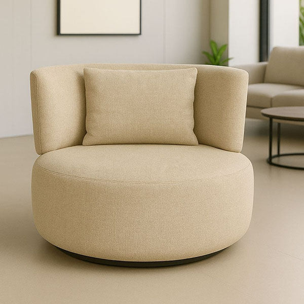 ALDEN ARMCHAIR IN BEIGE TEFLON FABRIC AND BLACK METAL BASE