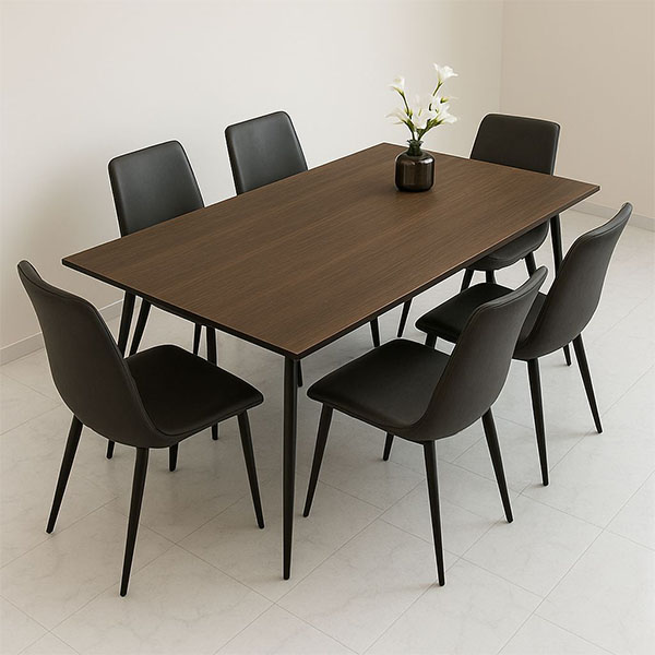 ALESANDRA table 140cm in coffee matt ceramic and matt black base