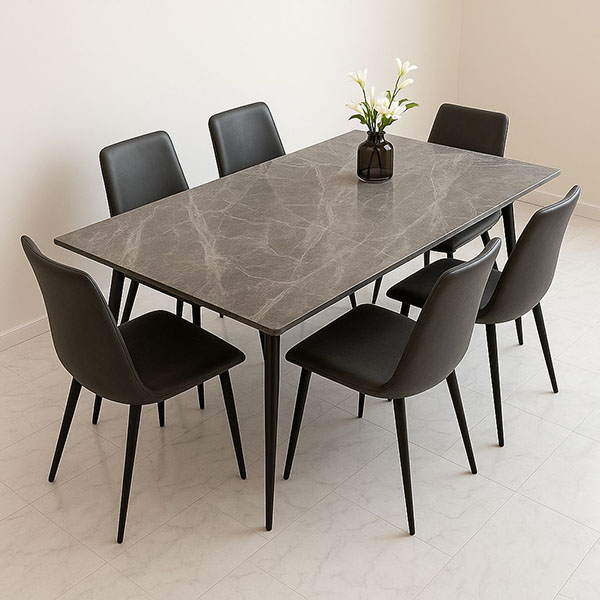 ALESANDRA table 140x80cm in gray gloss ceramic and matt black base