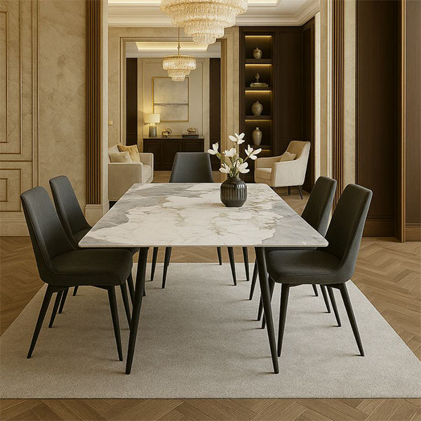 ALESANDRA table 180cm in white-brown gloss ceramic and matt black base