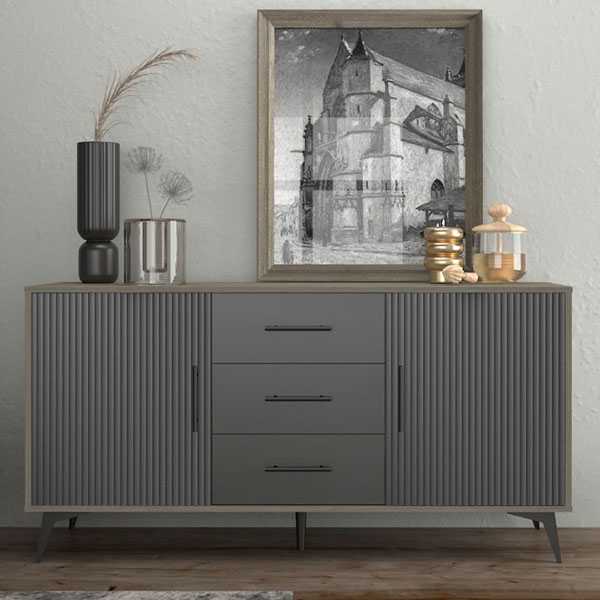 ALEXIA buffet in gray melamine and wave panel doors in painting
