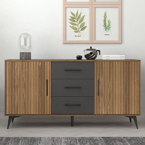 ALEXIA buffet in walnut melamine and wave panel doors in PVC with wood color
