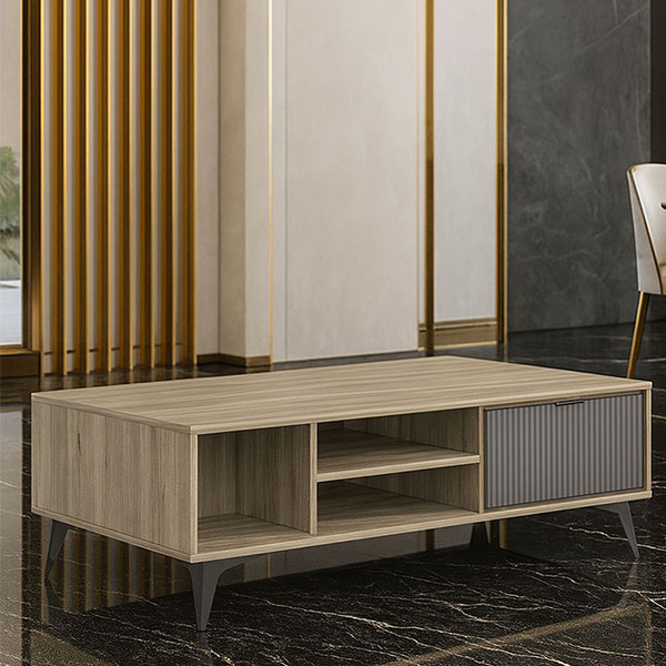 ALEXIA COFFEE TABLE IN GRAY MELAMINE AND WAVE PANEL DOORS IN PAINTING