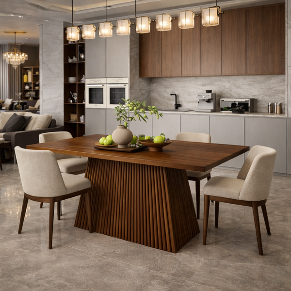 ALEXIA TABLE 200x100cm IN WALNUT MELAMINE AND WALNUT BASE