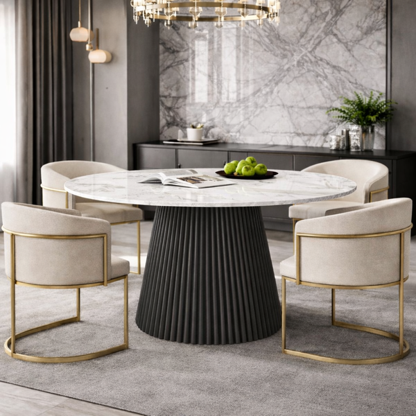 ALEXIA table 130cm in white-brown gloss ceramic and gray base