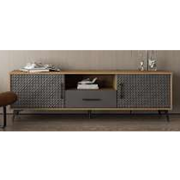 ALEXIA tv stand in gray melamine and wave panel doors in painting