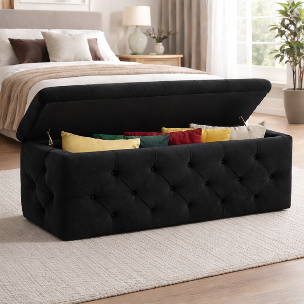 ALLEGRA footstool with storage in black teflon fabric