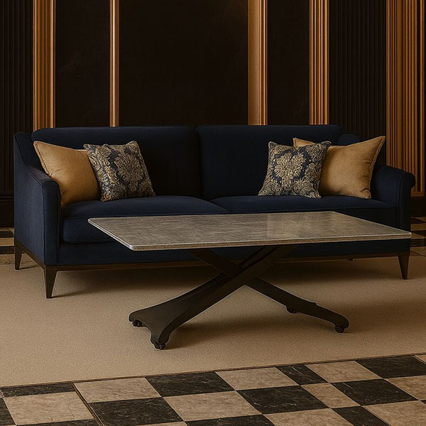 ALONSO COFFEE TABLE WITH CONVERSION MECHANISM INTO DINING TABLE IN GRAY GLOSS SINTERED STONE CERAMIC AND MATT BLACK BASE