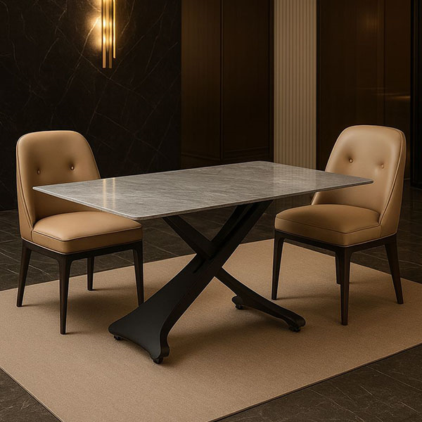 ALONSO coffee table with conversion mechanism into dining table in gray gloss sintered stone ceramic and matt black base