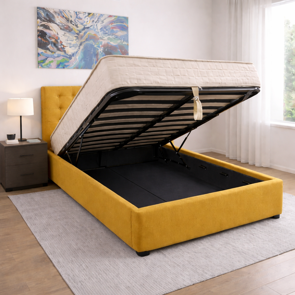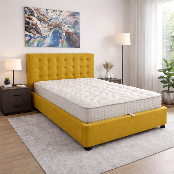 ANNA SOPHIA bed 107x192cm with storage in yellow fabric